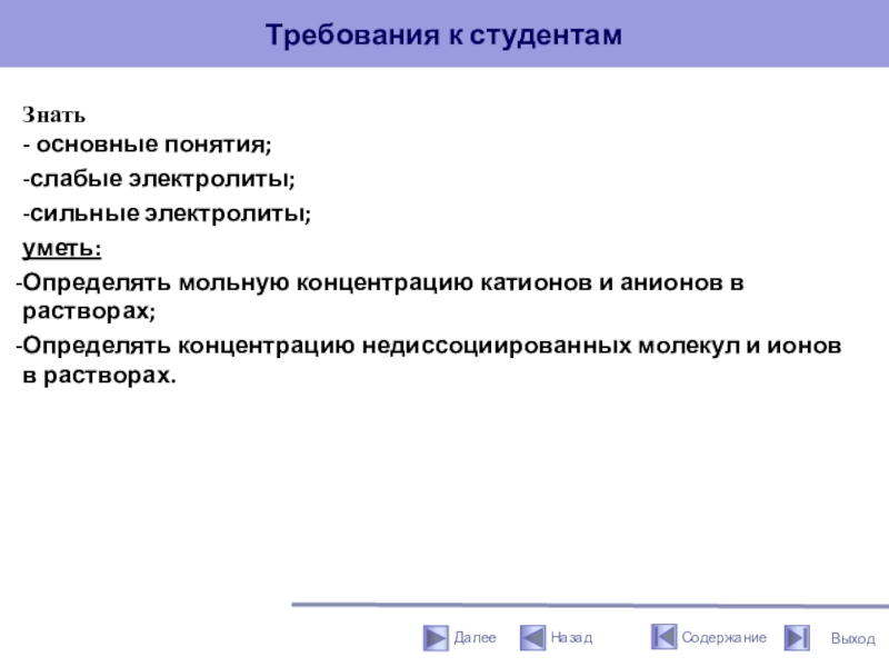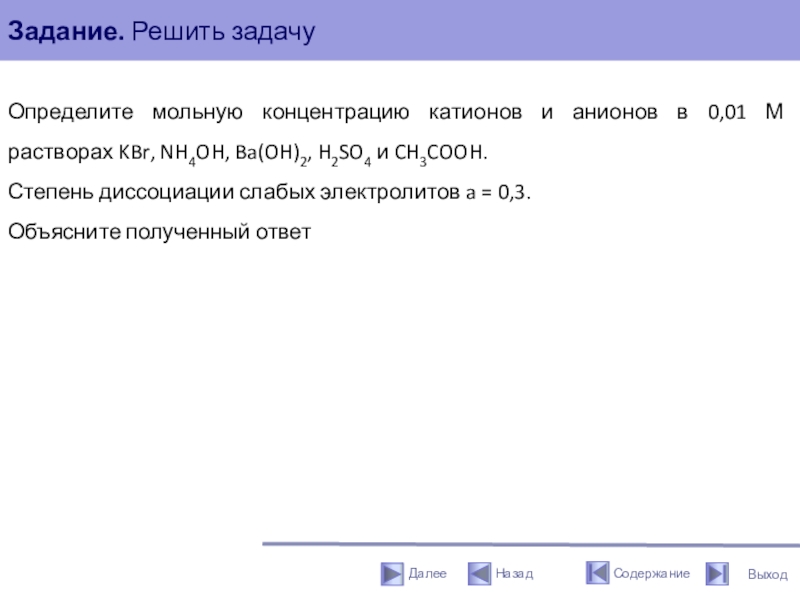 Определять концентрацию недиссоциированных молекул и ионов в растворах.
