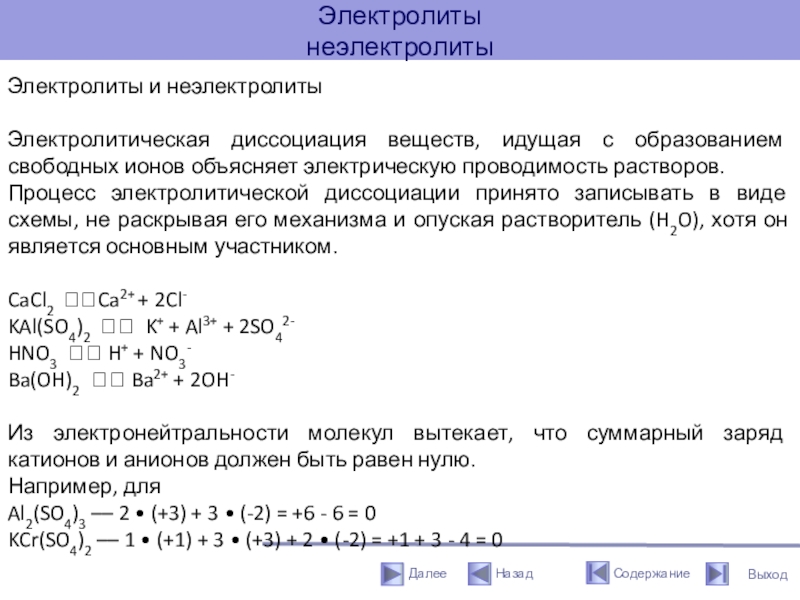 Слайд 7Электролиты, неэлектролиты (продолжение)