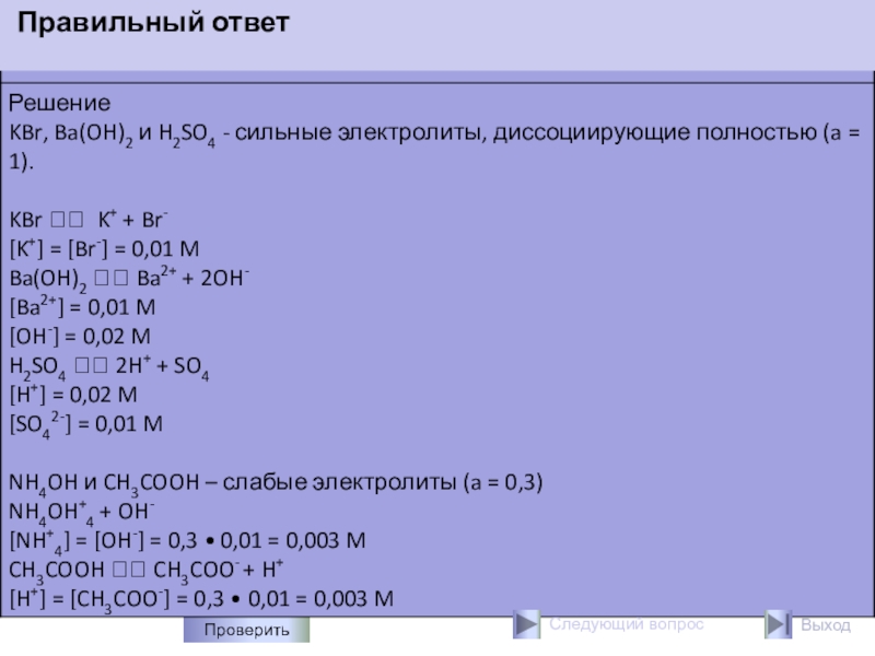 Концентрации ионов в растворах слабых электролитов качественно характеризуют