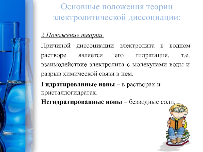 Распад электролитов на ионы при растворении его в воде или расплавлении называют электролитической диссоциацией.