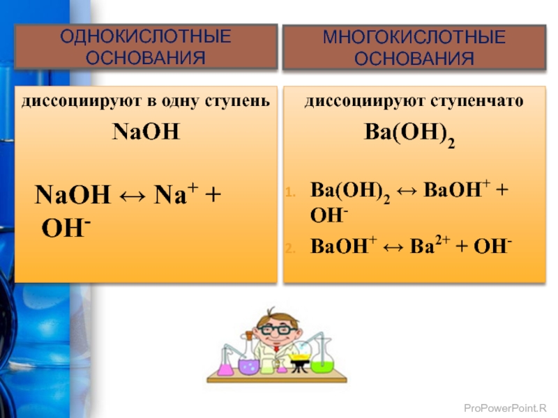 Основания – это электролиты, которые диссоциируют на катионы металла и анионы гидроксогрупп.