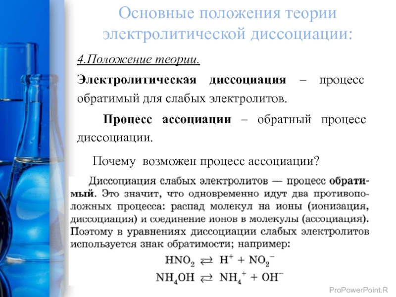 Степень диссоциации – это отношение числа частиц, распавшихся на ионы (Nд), к общему числу растворенных частиц (Nр)