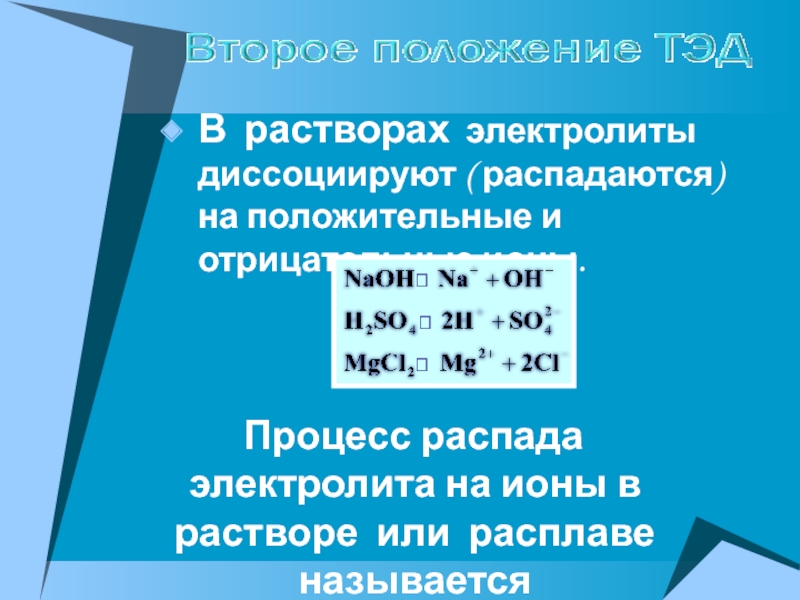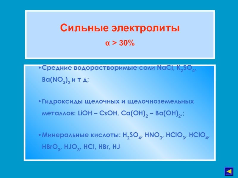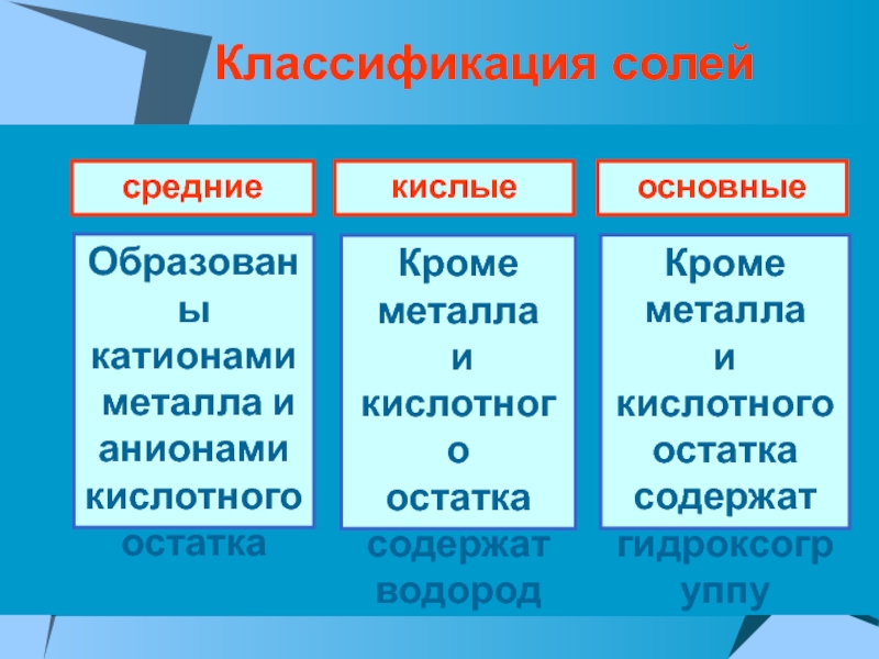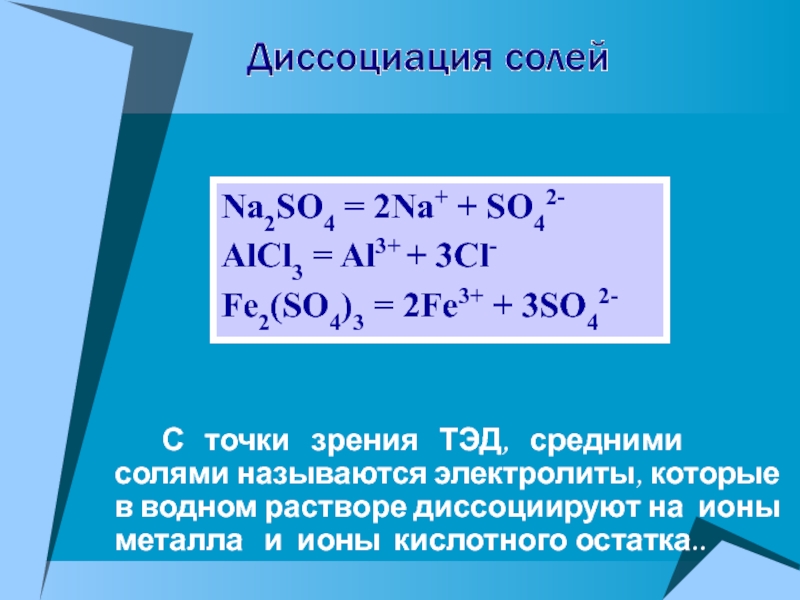 С точки зрения ТЭД, средними солями называются электролиты, которые в водном растворе диссоциируют на ионы металла и ионы кислотного остатка..