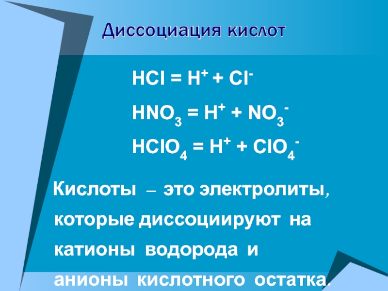 Кислоты – это электролиты, которые диссоциируют на катионы водорода и