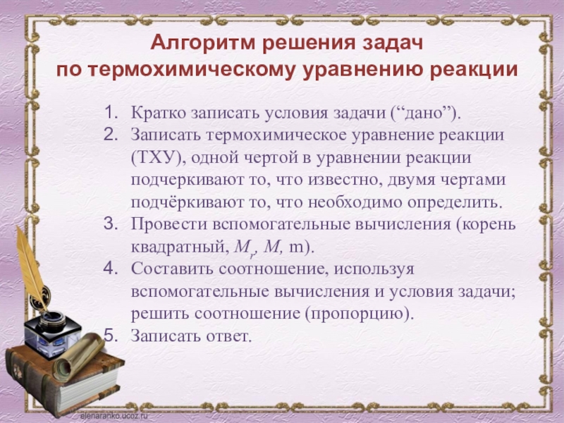 Слайд 5Алгоритм решения задач по термохимическому уравнению реакции