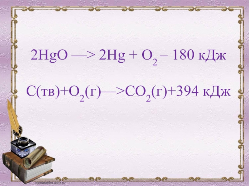 Слайд 42HgO —> 2Hg + O2 – 180 кДж