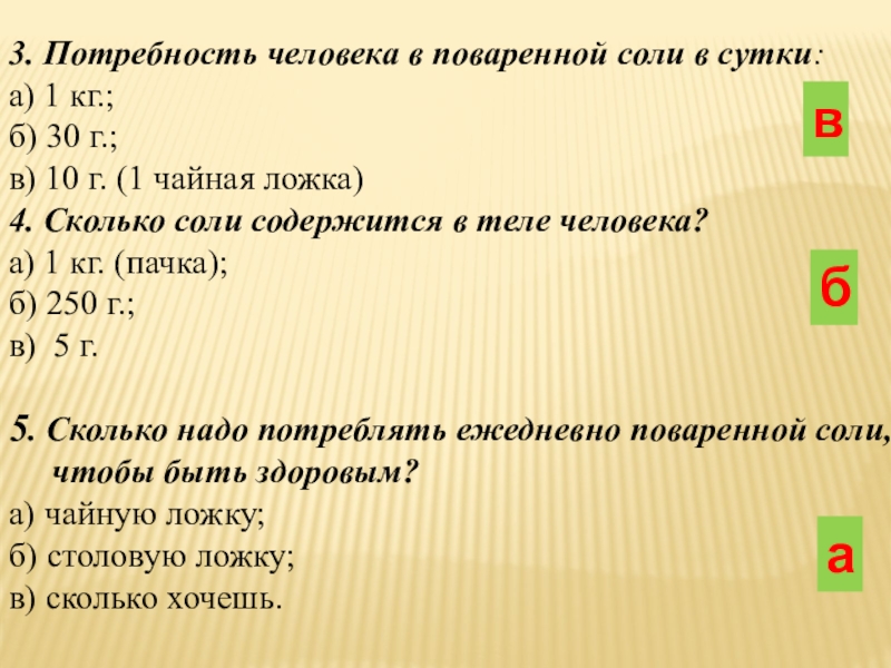 5. Сколько надо потреблять ежедневно поваренной соли,