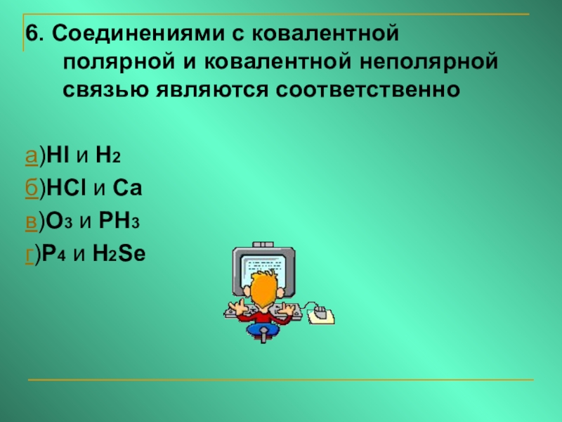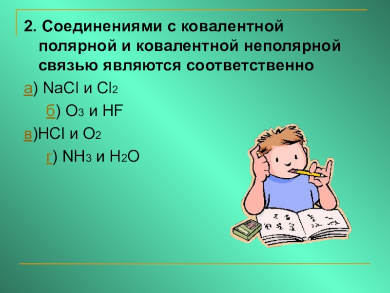 Слайд 42. Соединениями с ковалентной полярной и ковалентной неполярной связью являются соответственно