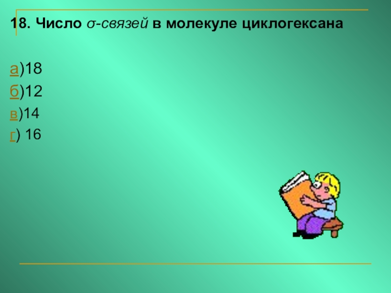 Слайд 2018. Число σ-связей в молекуле циклогексана