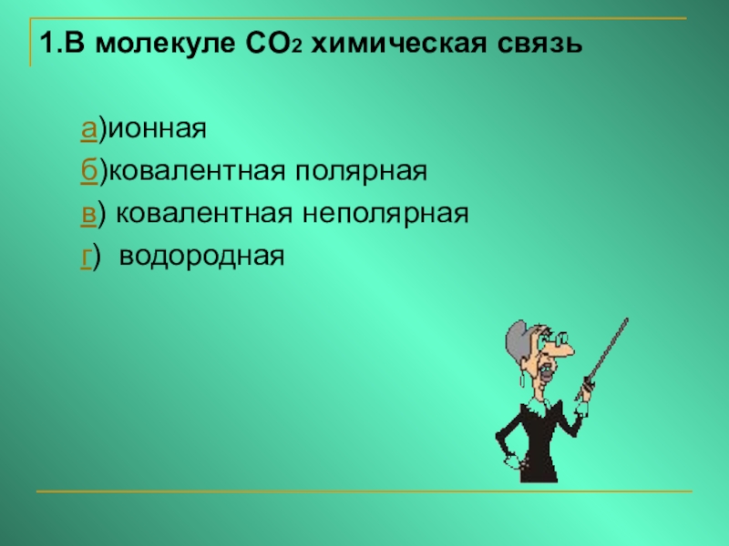 Слайд 2119. Число ¶-связей в молекуле оксида углерода(IV)