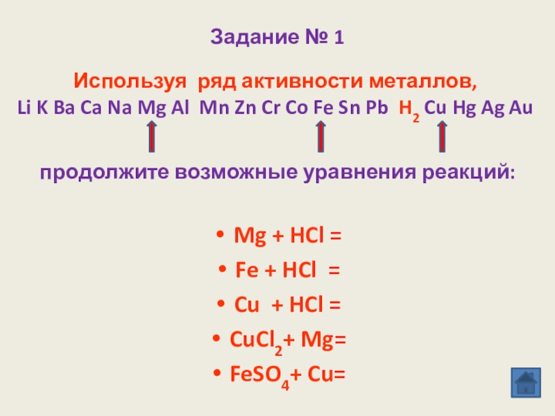 до водорода, вступают в реакции замещения с кислотами ,вытесняя из них водород.