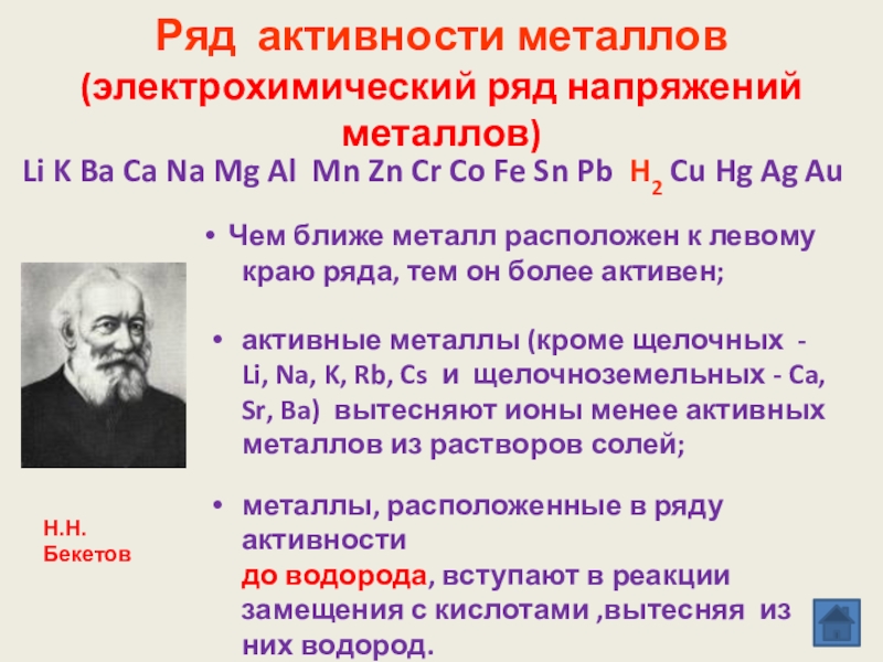 Li K Ba Ca Na Mg Al Mn Zn Cr Co Fe Sn Pb H2 Cu Hg Ag Au