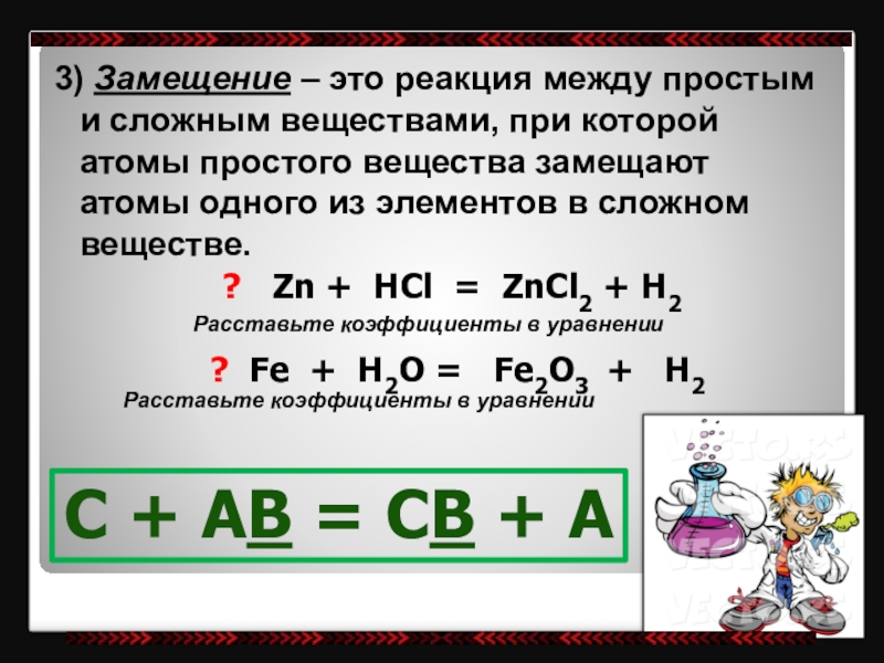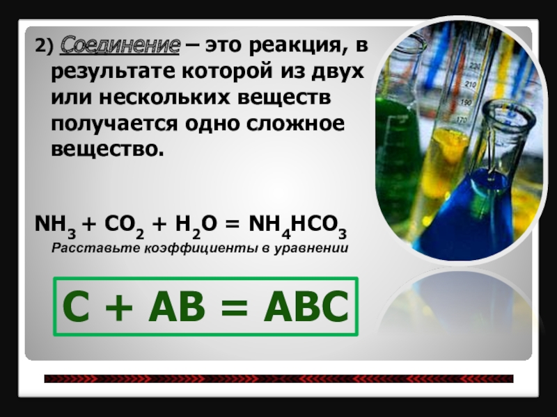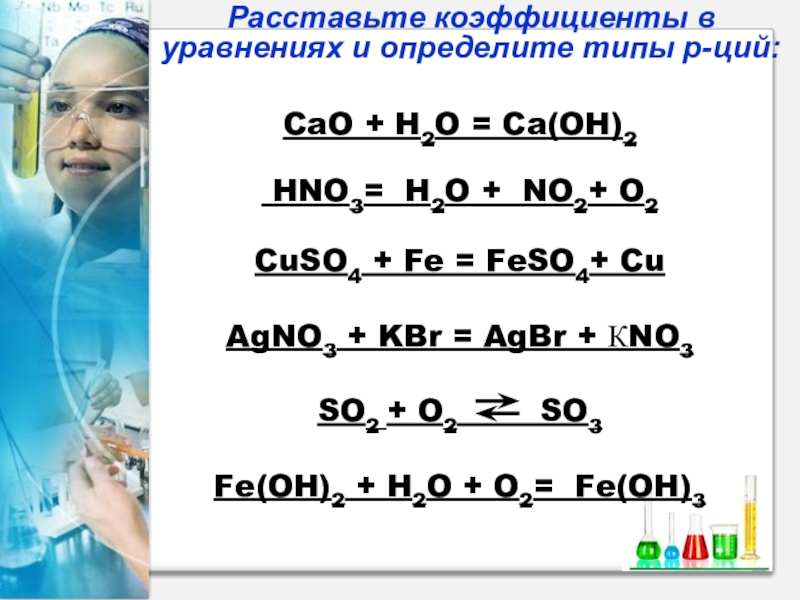 Расставьте коэффициенты в уравнениях и определите типы р-ций: