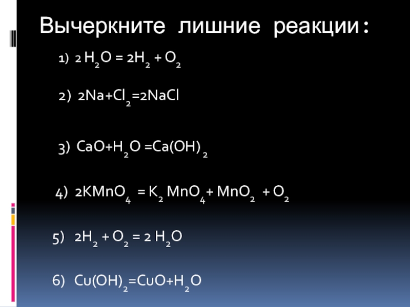 4) 2KMnO4 = K2 MnO4+ MnO2 + O2