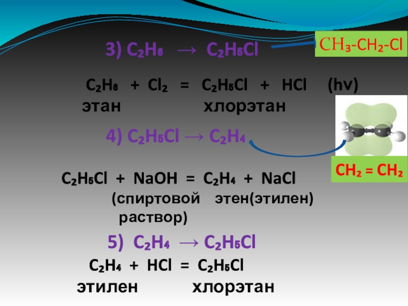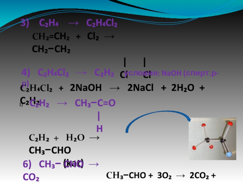 4) C₂H₄Cl₂ → C₂H₂ условия: NaOH (спирт.р-р)