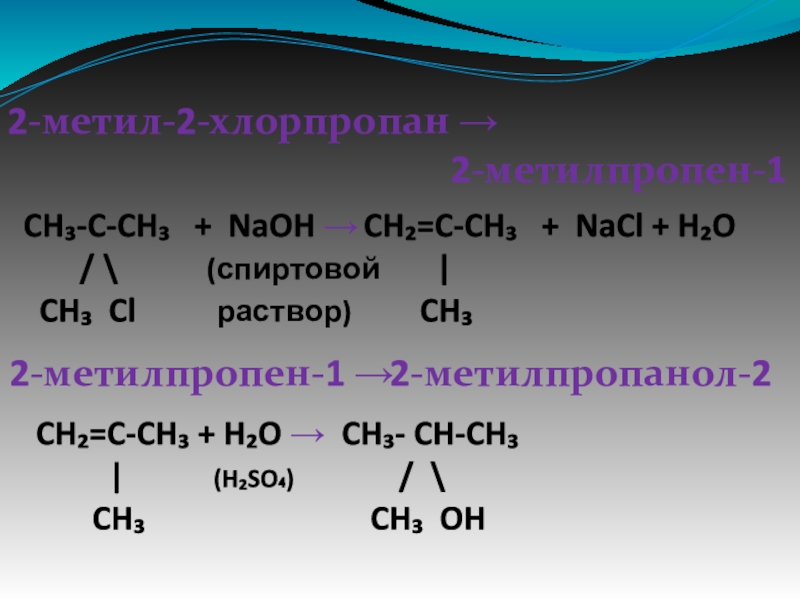 2-метил-2-хлорпропан →2-метилпропен-1→