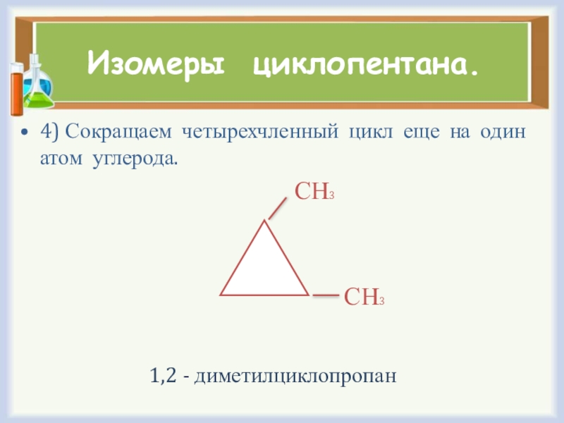 Изомеры циклопентана.4) Сокращаем четырехчленный цикл еще на один атом углерода.