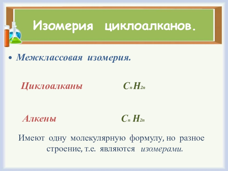 Изомерия циклоалканов.Межклассовая изомерия.      Циклоалканы