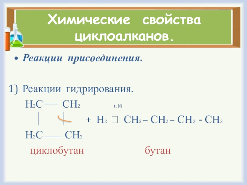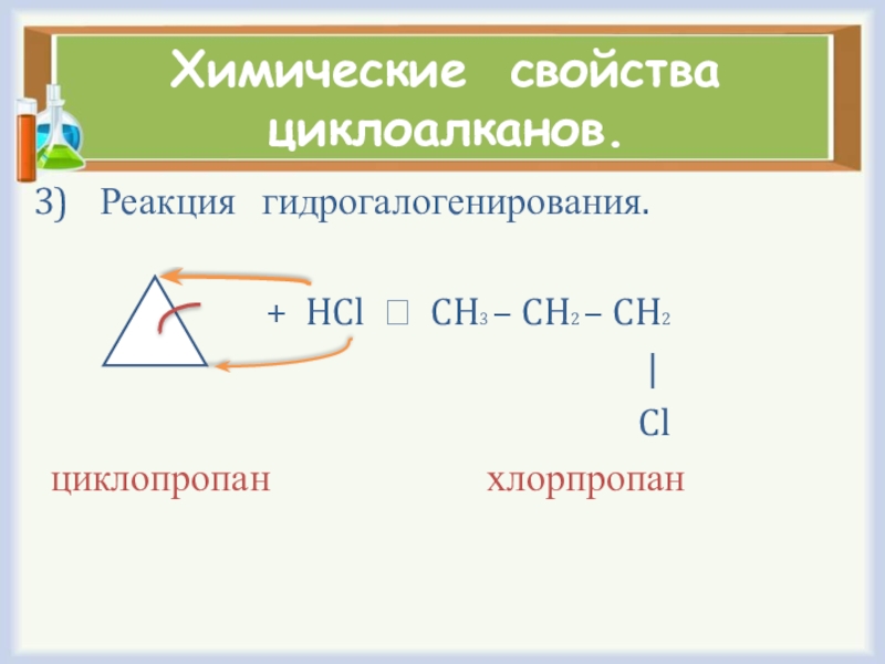 Химические свойства циклоалканов.Реакция  гидрогалогенирования.