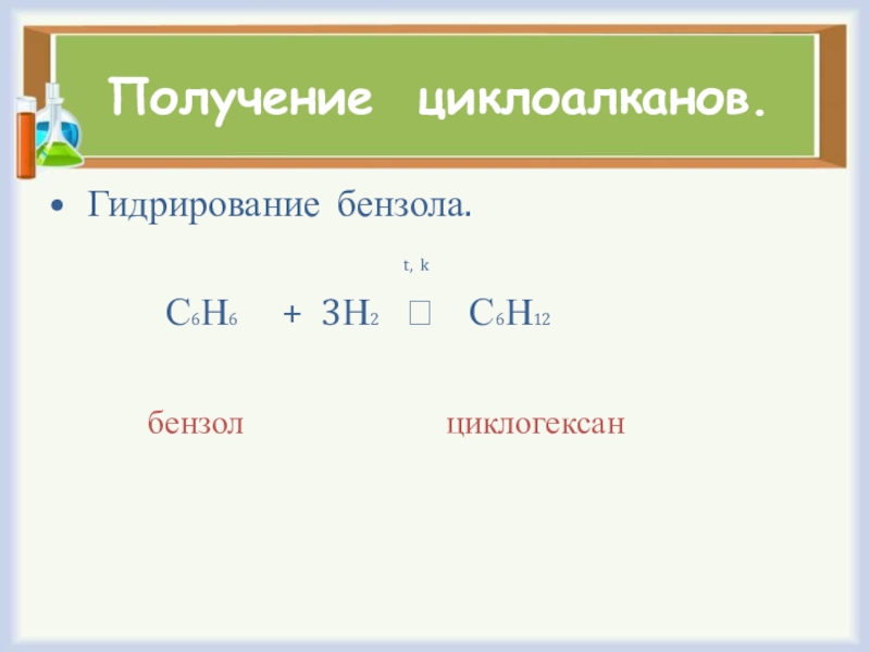 Химические свойства циклоалканов.Реакция дегидрирования.             t,