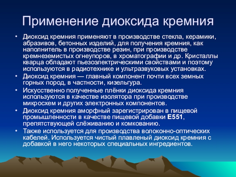 Диоксид кремния применяют в производстве стекла, керамики, абразивов, бетонных