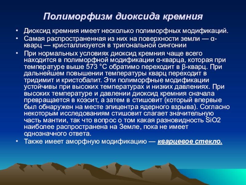 Диоксид кремния имеет несколько полиморфных модификаций.
