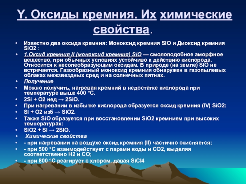 Слайд 49Y. Оксиды кремния. Их химические свойства.