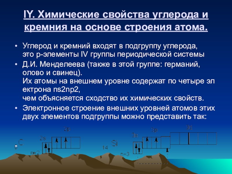 IY. Химические свойства углерода и кремния на основе строения атома.