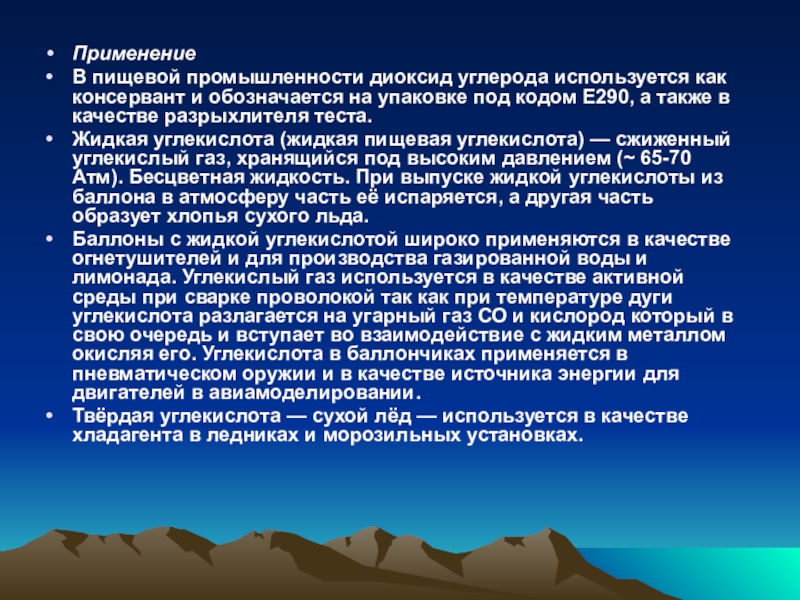 В пищевой промышленности диоксид углерода используется как консервант и обозначается на