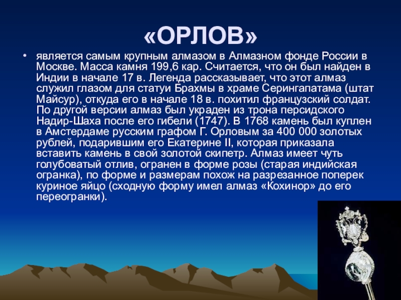 «КОХИНОР», является одним из наиболее известных исторических алмазов, принадлежащий к