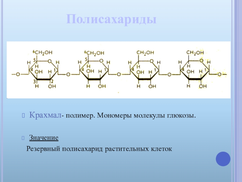 Крахмал- полимер. Мономеры молекулы глюкозы.