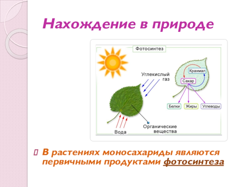 Нахождение в природеВ растениях моносахариды являются первичными продуктами фотосинтеза