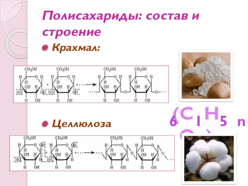 Полисахариды: состав и строение Крахмал:Целлюлоза