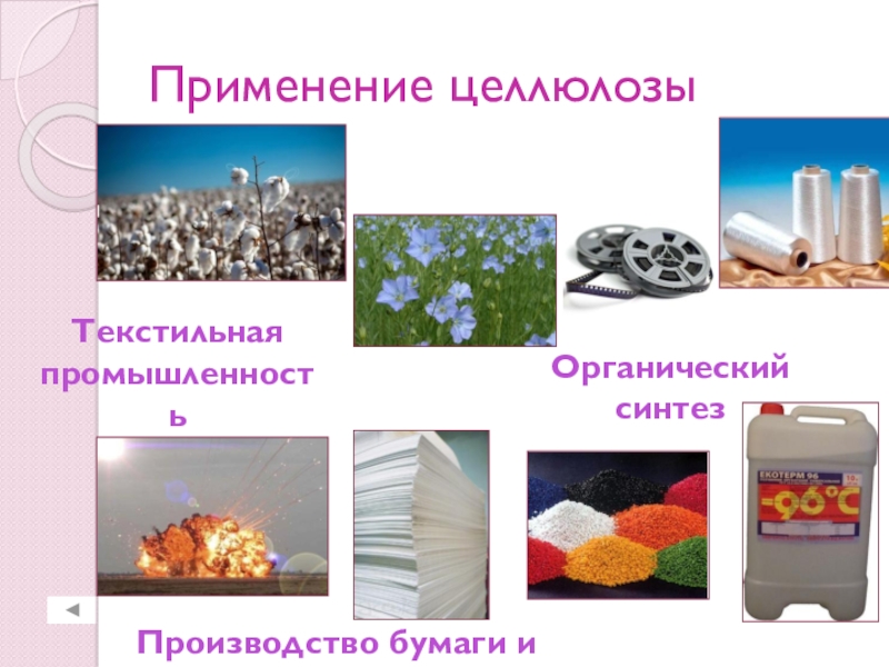 Применение целлюлозыТекстильная промышленностьОрганический синтезПроизводство бумаги и ВВ