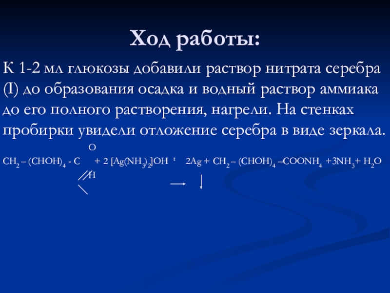 образования осадка и водный раствор аммиака до его полного растворения, нагрели. На стенках пробирки увидели отложение серебра в виде зеркала.