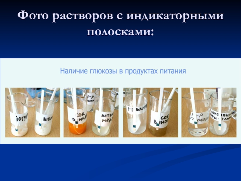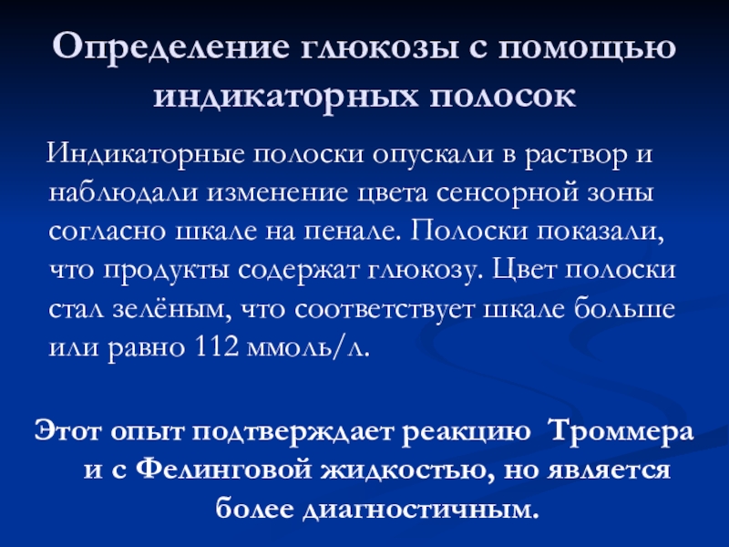 Слайд 25Определение глюкозы с помощью индикаторных полосок