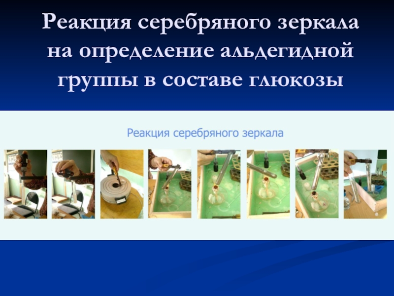 Слайд 13Реакция серебряного зеркала на определение альдегидной группы в составе глюкозы