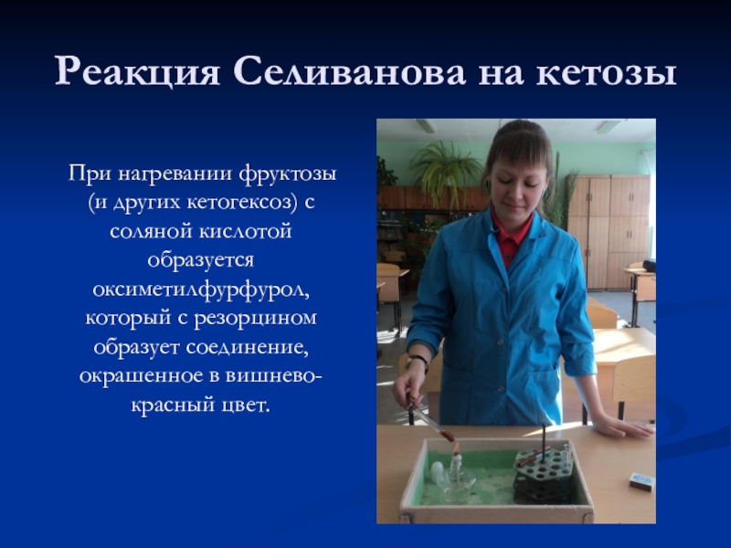 других кетогексоз) с соляной кислотой образуется оксиметилфурфурол, который с резорцином образует соединение, окрашенное в вишнево-красный цвет.