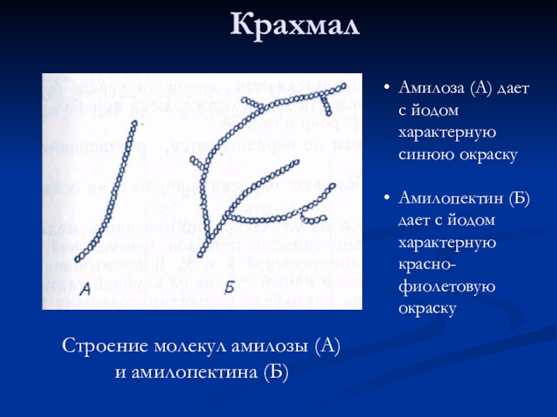 Амилопектин (Б) дает с йодом характерную красно-фиолетовую окраску