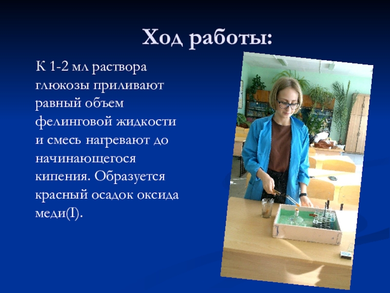 Этот опыт подтверждает реакцию Троммера и с Фелинговой жидкостью, но является более диагностичным.