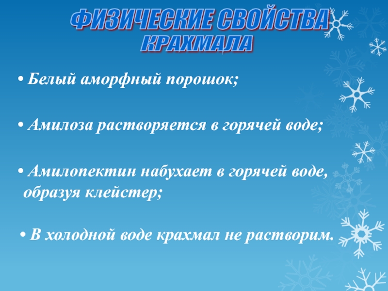 Амилопектин набухает в горячей воде, образуя клейстер;