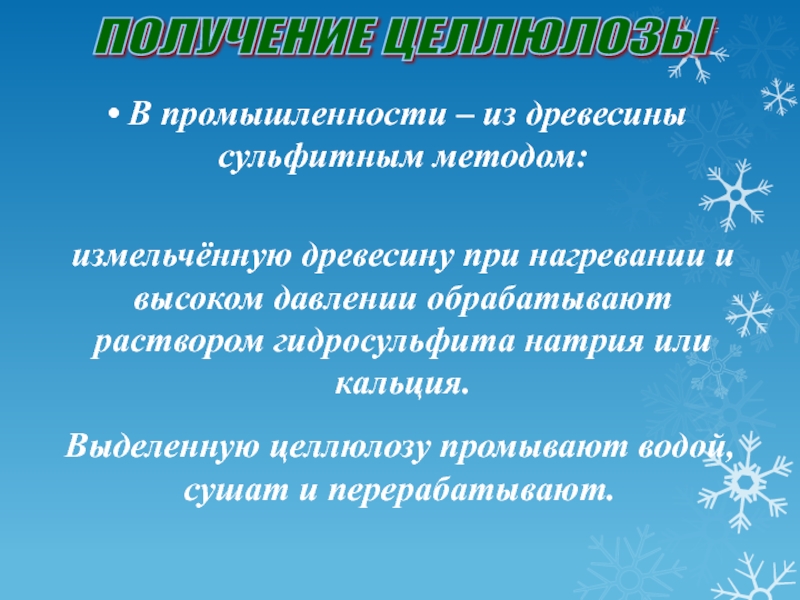 Выделенную целлюлозу промывают водой, сушат и перерабатывают.