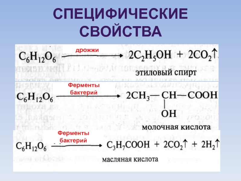 СПЕЦИФИЧЕСКИЕ СВОЙСТВАБРОЖЕНИЕдрожжиФерменты бактерийФерменты бактерий