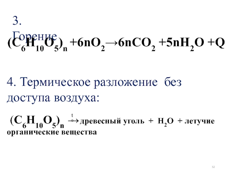 (С6Н10О5)n +6nО2→6nСО2 +5nН2О +Q