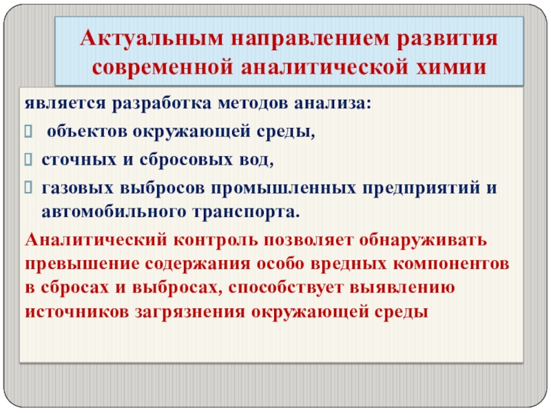 Слайд 10Актуальным направлением развития современной аналитической химии