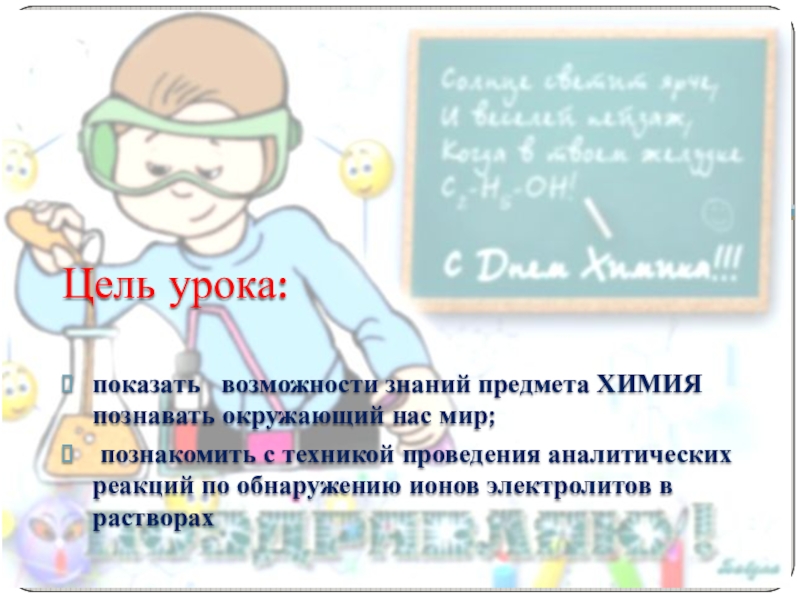 показать возможности знаний предмета ХИМИЯ познавать окружающий нас мир;