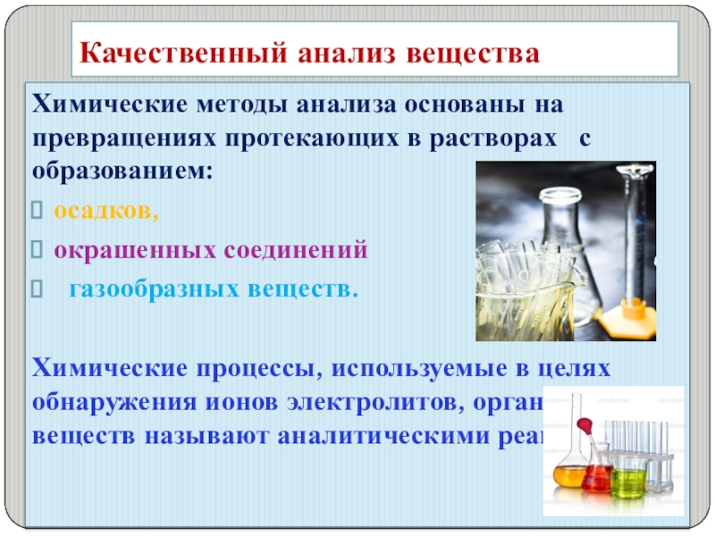 Химические методы анализа основаны на превращениях протекающих в растворах