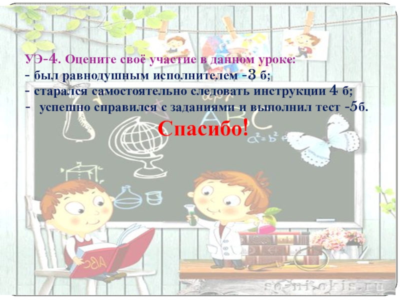 Слайд 22УЭ-4. Оцените своё участие в данном уроке: