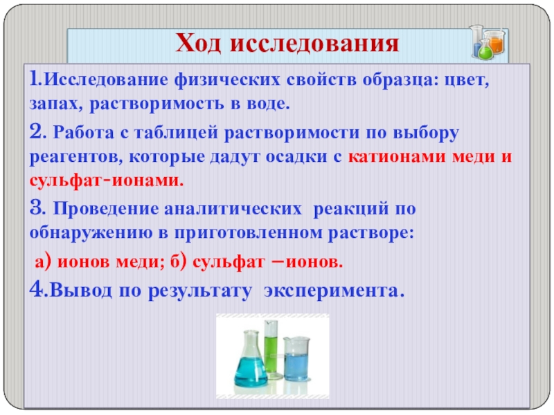 3. Проведение аналитических реакций по обнаружению в приготовленном растворе: