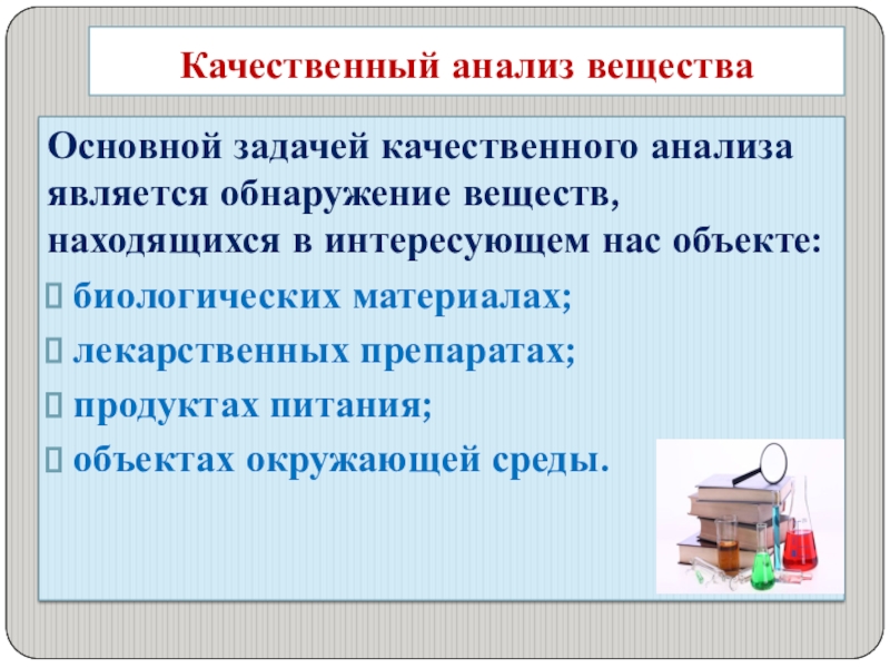 Основной задачей качественного анализа является обнаружение веществ, находящихся в